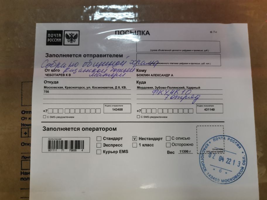 Молодые активисты нашего храма приняли участии в этом добром деле. В начале апреля для заключенных исправительной колонии №10 в Мордовии были собраны и отправлены продукты питания и средства гигиены.