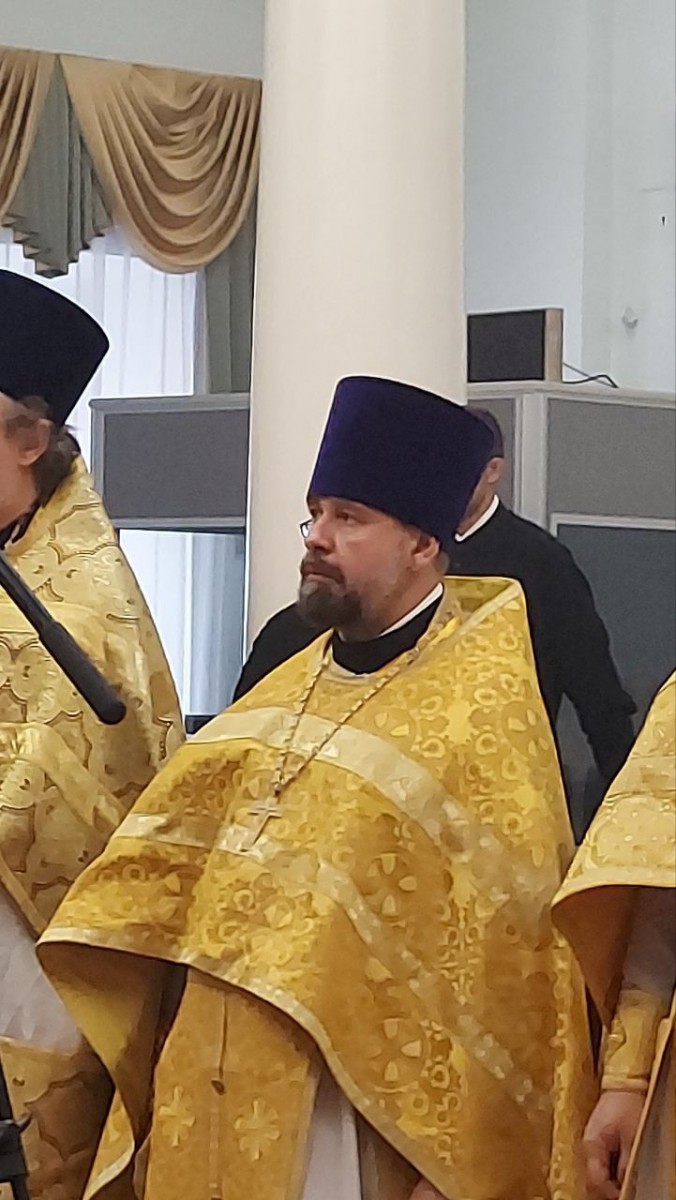 По окончании богослужения слова приветствия владыке Евфимию произнес заместитель председателя Комиссии по взаимодействию с вузами и научным сообществом при Епархиальном совете г. Москвы иерей Димитрий Данилов.