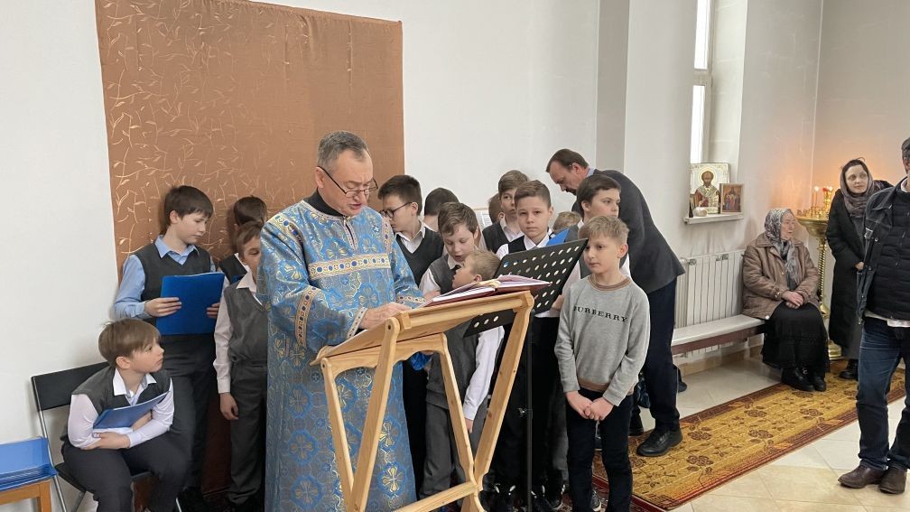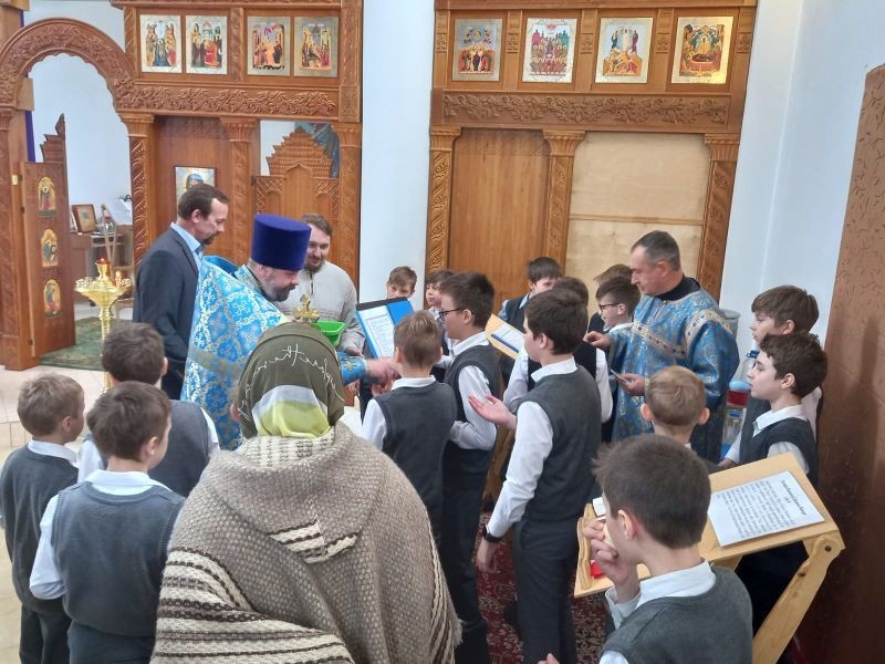 Настоятель храма протоиерей Сергий Попов в своем слове обратился к юным певчим и их регенту. Отец Сергий с особой теплотой вспомнил посещения храма в далеком детстве - тогда единственной действующей в городе Красногорске Боголюбской церкви в Павшине. Красота богослужений и молитвенный дух тех времен впоследствии оказали огромное значение на выбор жизненного пути будущего пастыря. Желая помощи Божьей в несении нелегкого, но благодатного клиросного послушания, всем ребятам и их руководителям были вручены небольшие образы "Казанской" Богородицы и просфоры.