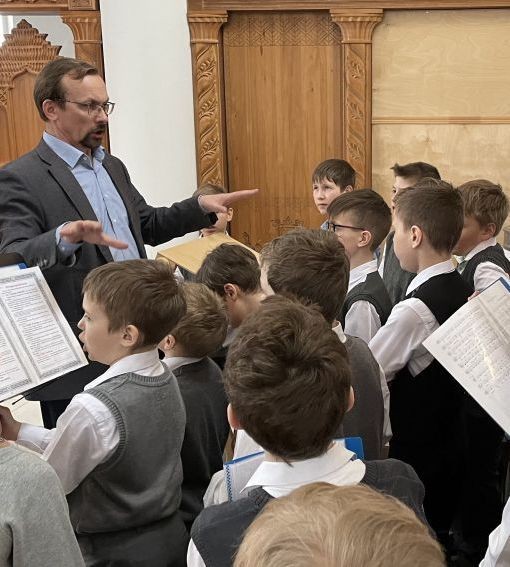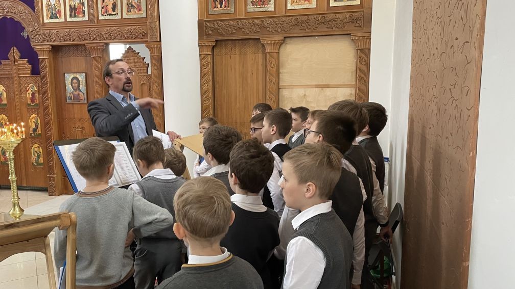 Регентом этого хора является преподаватель вероучительных дисциплин Алексей Юрьевич Пушкин. За богослужением были исполнены как классические партесные песнопения, так и древнерусские знаменные. Несмотря на то, что это было первое полноценное участие ребят в церковной службе, не было никаких ошибок и заминок во время литургии. За богослужением молилась исполнительный директор школы "Рождество" Валерия Феликсовна Шварц. В конце литургии все певчие и большинство их родителей причастились Святых Христовых Таин.