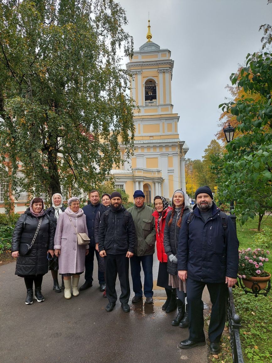Первым местом, куда отправились паломники, стала Свято-Троицкая Александро-Невская лавра. Здесь все помолились у мощей благоверного князя Александра Невского и других святынь Троицкого собора.