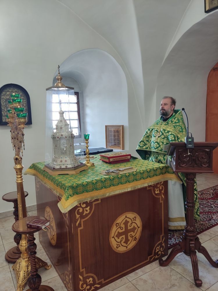 Божественную литургию в Георгиевском храме обители возглавил настоятель Казанского храма г. Красногорск протоиерей Сергий Попов. Ему сослужили священник Александр Болотный, руководитель отдела по утверждению трезвости и профилактике зависимостей Одинцовской епархии и диакон Виктор Курсай. На богослужении молился вице-губернатор Московской области Александр Анатольевич Чупраков. В конце литургии все паломники причастились Святых Христовых Таин.