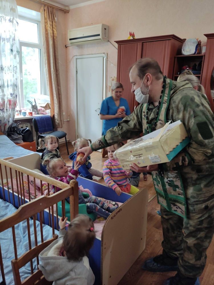 В ходе поездки священники посетили Региональный дом ребенка в городе Донецк. Дети и сотрудники причастились Святых Христовых Таин и получили пасхальные подарки. Также была передана гуманитарная помощь в виде продуктов, средств гигиены и денежные средства.