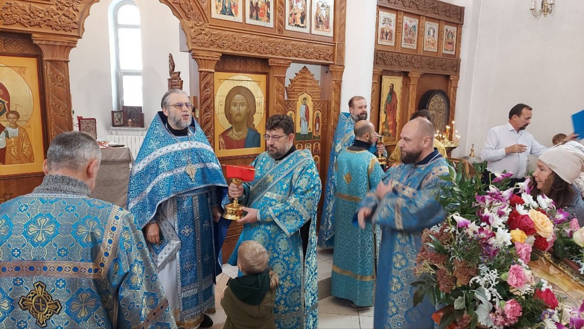 Отец Владимир тепло поздравил настоятеля и прихожан с престольным праздником. Также особые слова благодарности были обращены к директору школы Валерии Феликсовне Шварц, которая молилась вместе со своими воспитанниками.