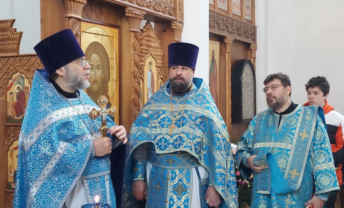 4 ноября в нашем храме благочинный Красногорского церковного округа протоиерей Владимир Шафоростов совершил божественную литургию. Ему сослужили настоятель протоиерей Сергий Попов и дьякон Сергий Кузнецов. На службе пел сводный хор воспитанников православной школы "Рождество" из пос. Снегири Истринского района под управлением Алексея Юрьевича Пушкина.